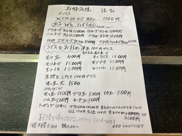 外気温2度、暖房の無い店内で凍えました。途中で、店主が鉄板に火をつけてくれたけど、それでも寒かった…。