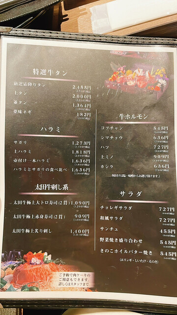 太田牛本日の希少部位