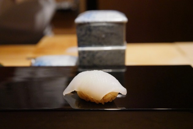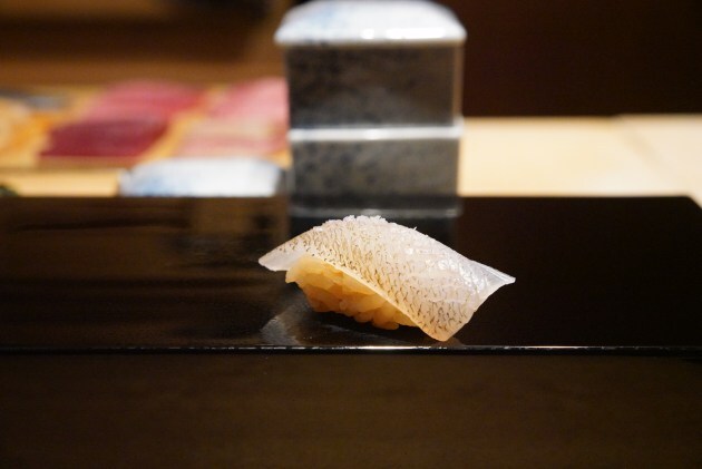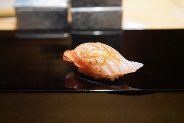 最初のにぎりは「金目鯛」表面に施された切り込みの美しさにしばし見惚れてしまいました。