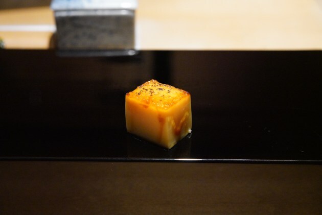 美しい化粧箱に規則正しく収められた最高級・礼文産「ウニ」は、質の良いものからこの美しい箱になるのだそう。フレッシュで濃厚なウニをこれでもか!と重ねてくださり大将の心意気がすごい。気がつけば、コースの合間で随所に和ませてくださるのでひたすら美味しいものを楽しくいただけました。