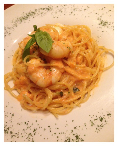 エビとモッツアレラとトマトクリームっていう素敵な組み合わせ♡