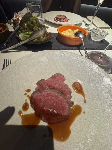 和牛もものローストビーフは、目の前で焼いてくれます。恵比寿の鉄板焼きもそうでしたが、Sublimeのこういうエンタメは凄く好きです。食感はやや硬い気がしましたが、肉肉しいマッチョな味わいで、ソースとよく合います。ただナニワヤの方が格上です。なかなか食べ応えがあり、連れは途中で満腹になったらしく、私に一枚くれました。