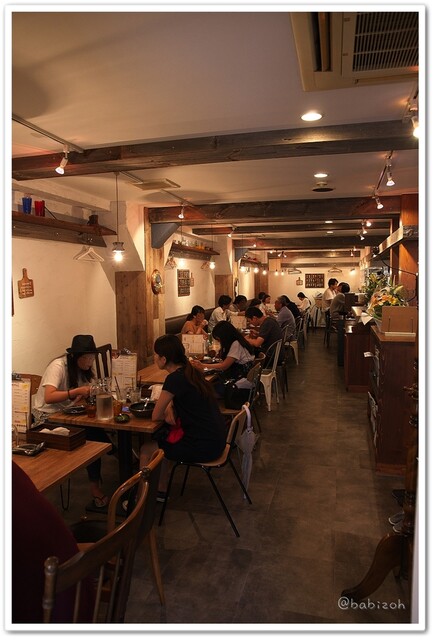 店内のテーブル席はほぼ満席。空いているのは座敷と外のテラスのみ。