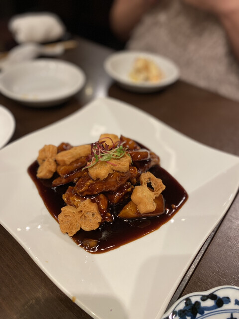 北京ダックはりんごときゅうりの千切りを巻いて食べるなど少し甘めの仕上がりでこれまた美味しかった。