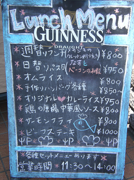 店頭看板のメニュー