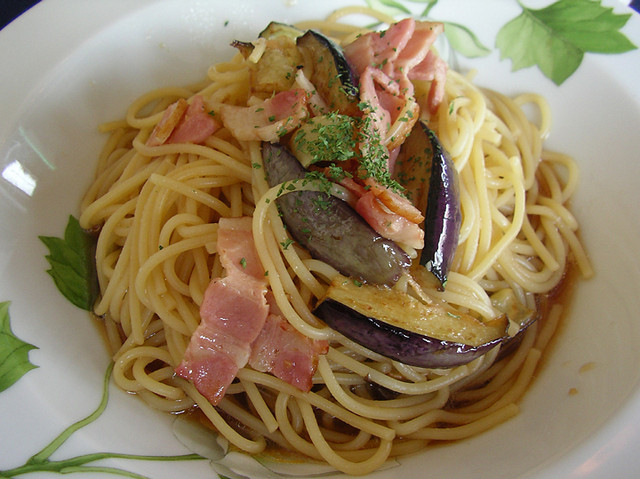 「なすとベーコンの和風」(ランチ:日替わりパスタ:サラダ付)750円