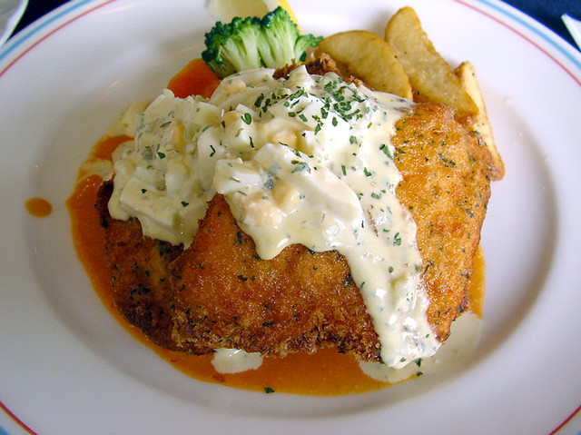 「サーモンフライ タルタルソース」(ランチ:ライス・サラダ付)800円