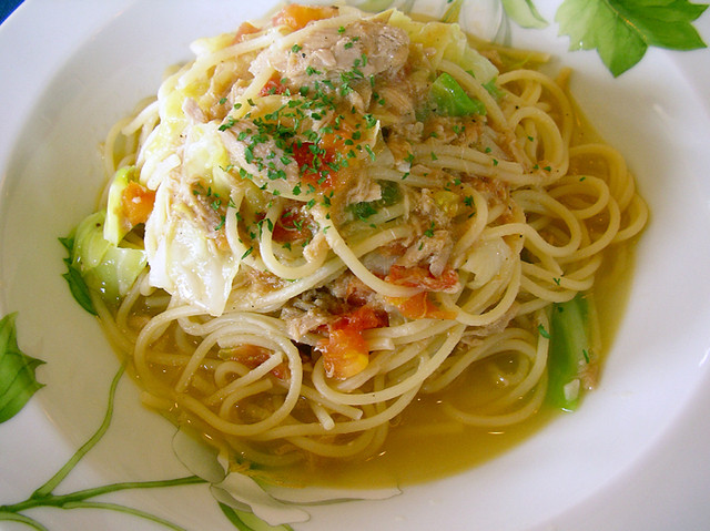 「トマト・ツナ・キャベツ塩味パスタ」(ランチ:日替わりパスタ:サラダ付)750円