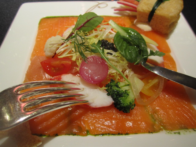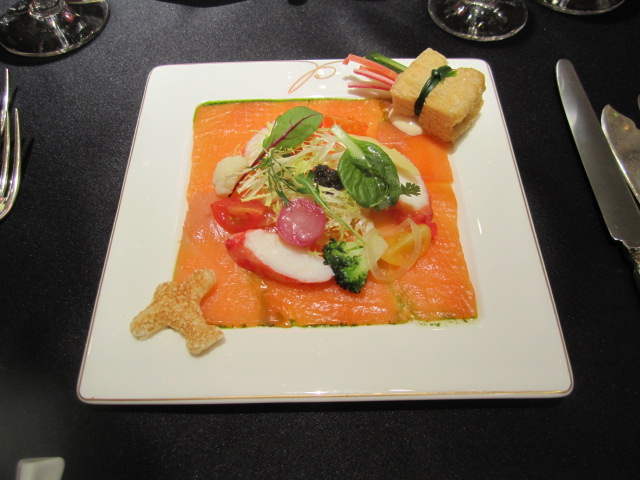 アトランティックサーモンの自家製スモークとタラバ蟹の愉しいオードブル