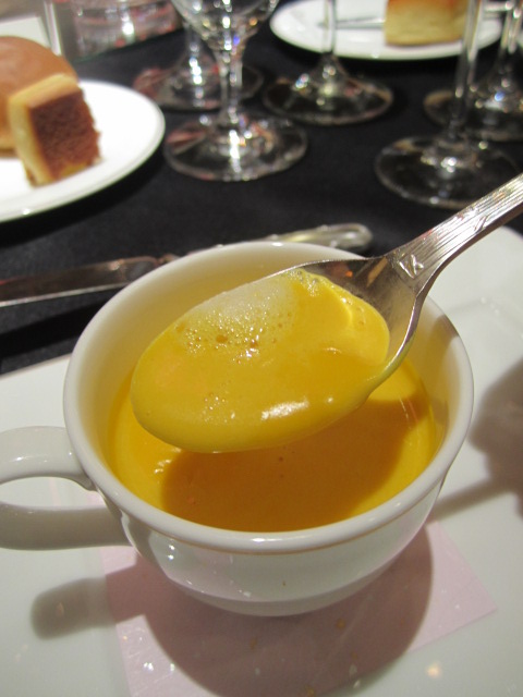 *100名超の正餐でありながら、信じられないほど熱々で提供されたスープは、まろやかでありながらコクが深い逸品 これ以上のパンプキンポタージュにはなかなかお目にかかれない。 ★5.0