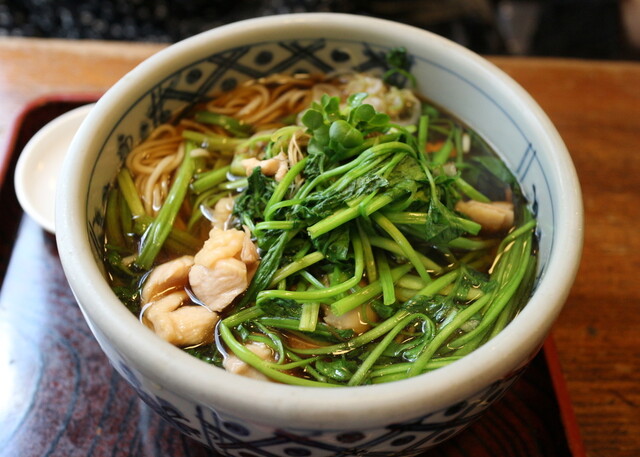 期間限定、10月から3月までのお愉しみは「かき南蛮そば」と「せり(かしわ)そば」