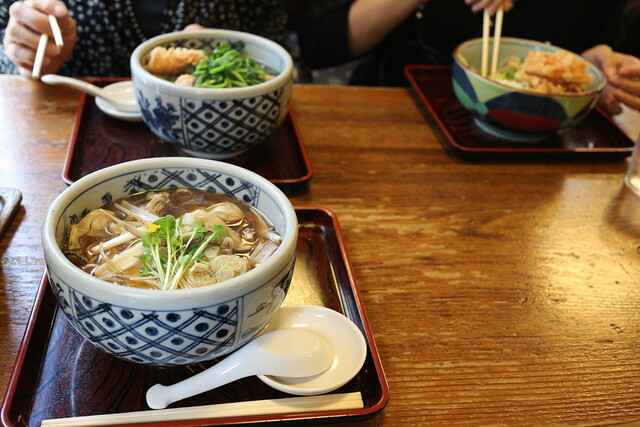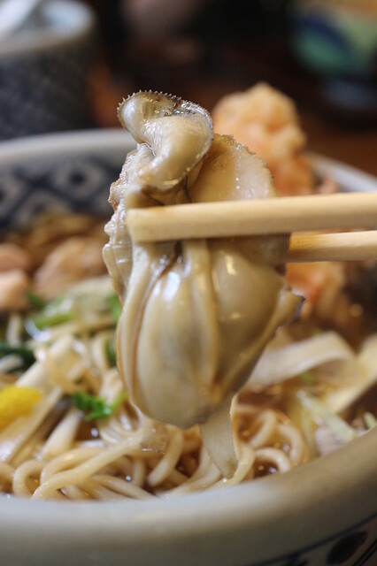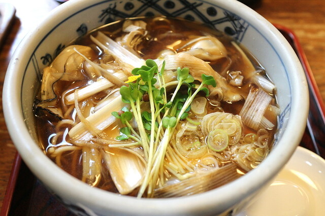 「牡蠣」と「せり」冬季限定の「行者にんにく」は他のそばにもトッピング可能。名物の「カレー南蛮そば」は「牡蠣・にら・カレー南蛮そば」や「牡蠣・行者にんにくカレー南蛮そば」など、他店では決して味わえない”わがままな組合せ”も聞いてくれるらしい。