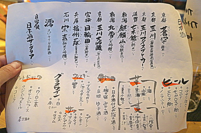 飲物お品書き