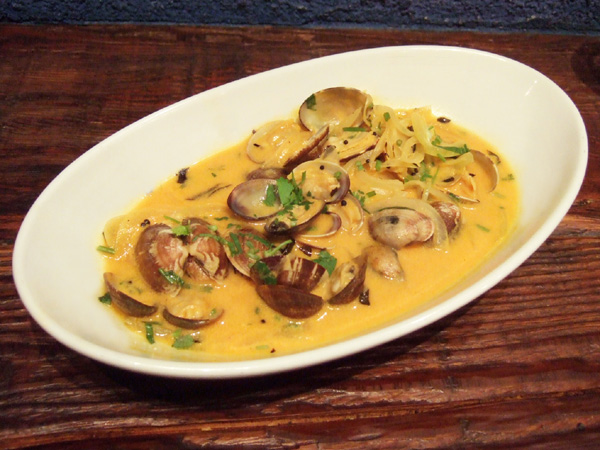 今回シーフードカレーにはほんとうに驚きました。ズワイガニ、バナナエビ、ホタテ貝柱、サーモン、ムール貝が惜しげもなく入っており、しかも具が全て大ぶりで美味しい。
