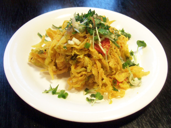 フルーツサラダはパクチーが添えて供されます。なんともびっくりな組み合わせですがグレープフルーツなどの柑橘類の果物にはパクチーが非常にしっくりくるんですね。