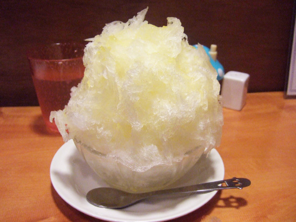 青い果実が全面に押し出た爽やかな味わい。甘さはほとんど無いけれど、こういうすっぱいかき氷も美味しいな。