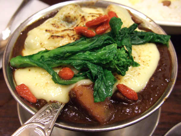 前回は野菜のみでしたが、今回はフンパツしてチーズも…ほのかに焼き色が付いたとろけるチーズはまろやかで美味しかったですが、カレーとごはんだけでもかなりの量になるので、後半やや強敵でした。