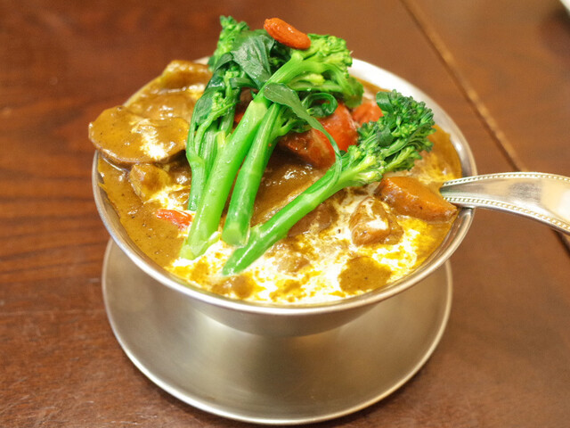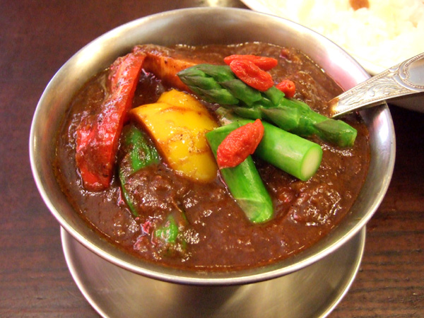 今回の野菜は大根、カボチャ、竹の子、しし唐、アスパラ、ひよこまめ、パプリカ、クコの実などなど。色鮮やかな野菜、とろける和牛ビーフ、スパイスたっぷりの濃厚なカレー…これらの味わいは今回も至福。