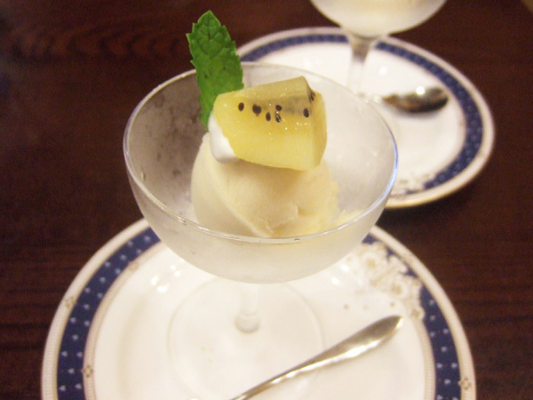 平日ランチサービスのアイスはラ・フランスのシャーベットでした。