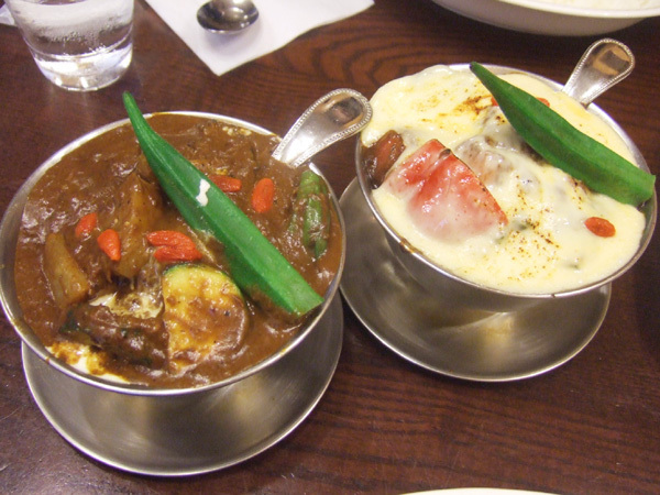 仔牛のミルクカレー(季節の野菜入り)と和牛ビーフカレー(季節の野菜とチーズ入り)