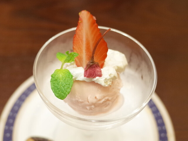 平日ランチーサービスの自家製アイスは桜のアイスクリームも美味しかったです。