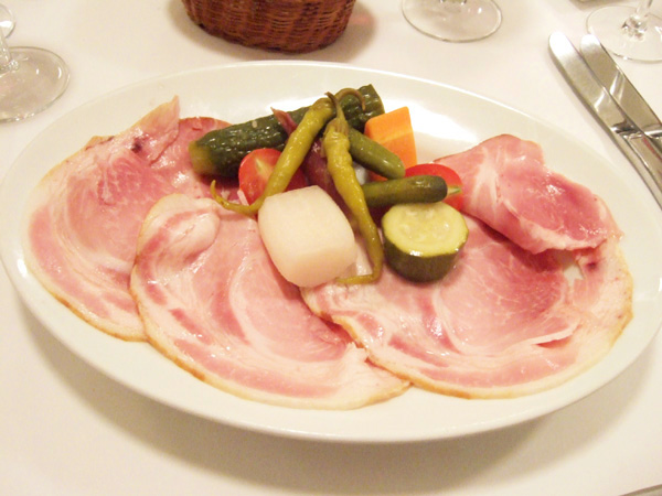 当初メニューを見て目星をつけていた「酵素ポークのくんせいハムのサラダ」と「カーン風トリップ(牛ハチノスのシードルとカルバドス煮込み)」は既に売り切れ。「これだ!」と思うポイントが、今日のお客さんとは近かったようです(涙)