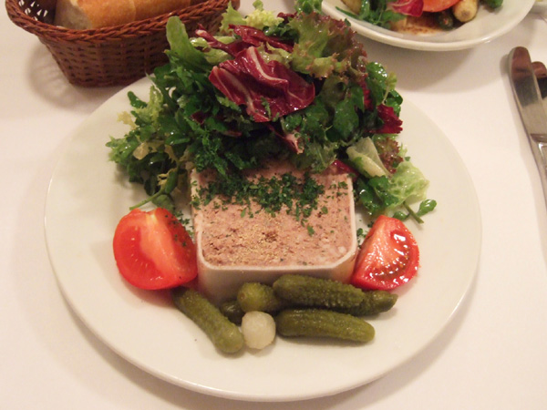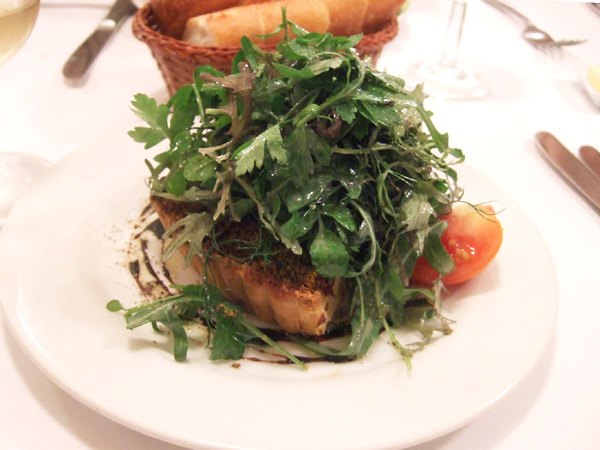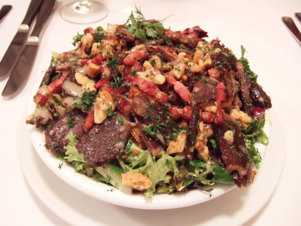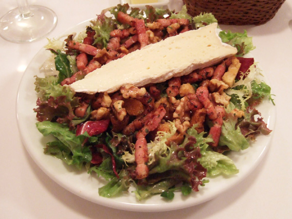 今回はマストオーダーの「鴨の砂肝のコンフィーのサラダ」が見当たらズでしたが、はじめてお目にかかった「ブリードゥモーとあたたかいベーコンとクルミのサラダ」がチーズがもりもり(すぎ)で好感触でした。
