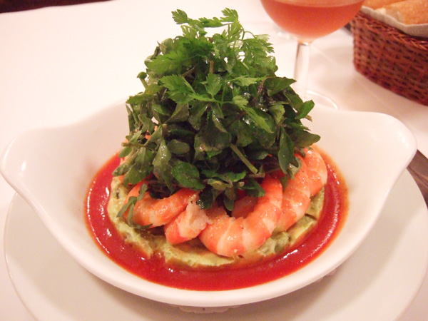 「小エビとアボカドのカクテル」も「とり白レバーのムース」もそりゃもう美味しいのですが、やまもり状態なので主菜をいただく前にお腹が幾分落ち着いてしまいますね(笑)