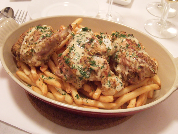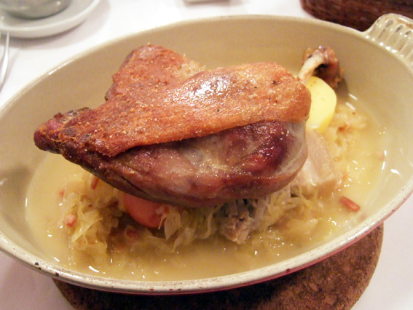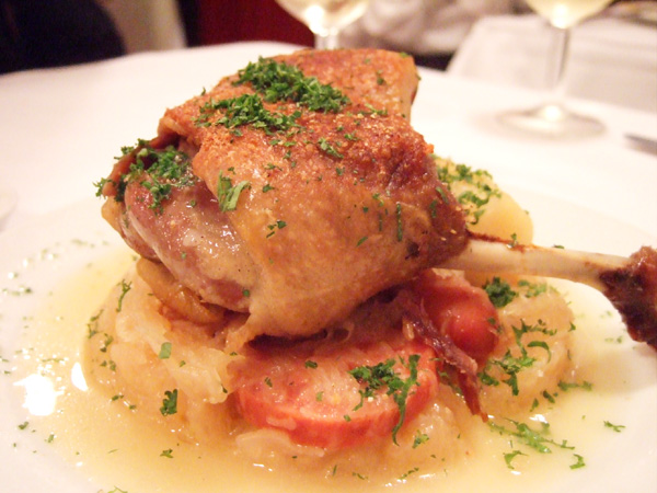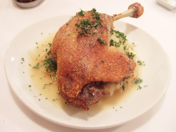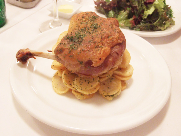 「フランス産 鴨のコンフィー」はぱりぱりで美味!そして鴨肉の下に敷かれたジャガイモやソーセージの量もハンパではありません。