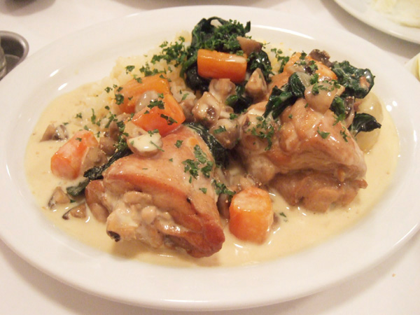 仔ウサギモモ肉のフリカッセ(シードルクリーム煮 ロックフォールチーズ風味)