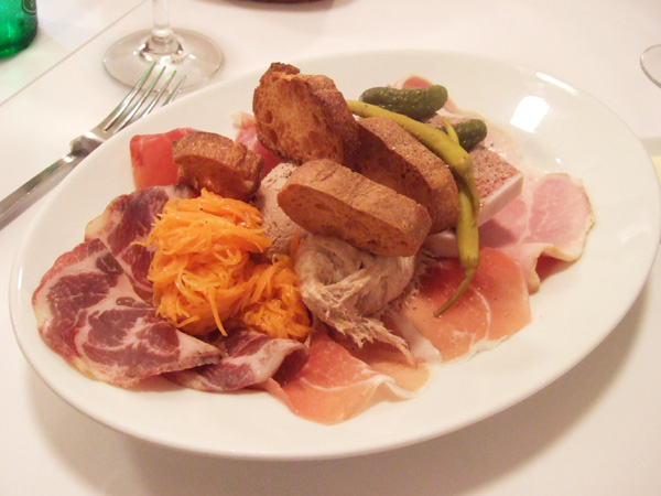 生ハム2種、サラミ4種、豚肉のリエット(+210円)