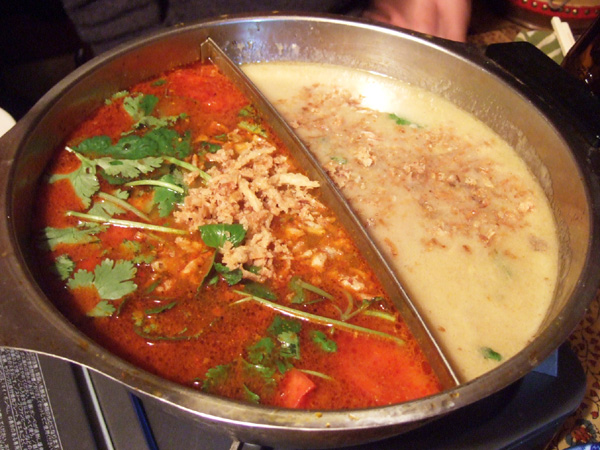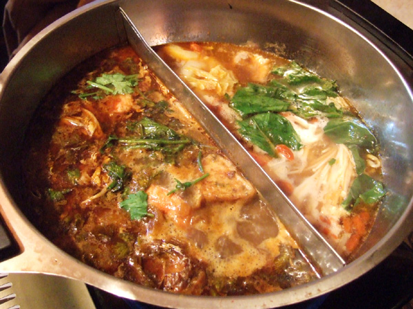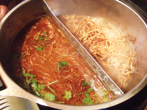 スチームボートに麺を入れて。
