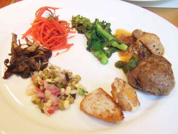 隣に居合わせたお客さんと一緒に4人でミュスカデのボトルで乾杯しつつ、いただいたお料理はこんな感じです。