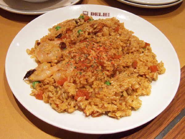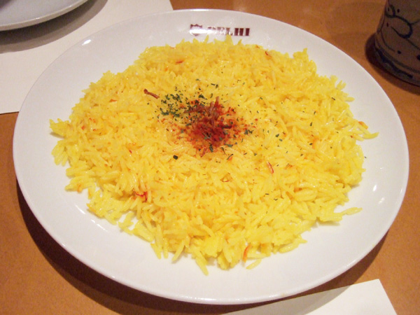 夜は長粒米(バスマティ)のサフランライスがあるんですが、これがまたさらっとしたデリーのカレーにぴったりでたまりません。特にカシミールカレーとの相性はスバラスィ!