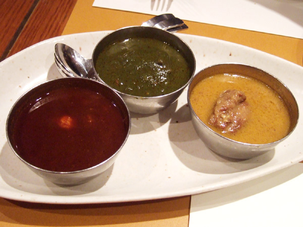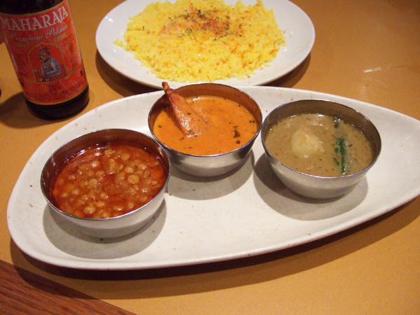 お好み3種カレー(1470円) チャナマサラ、バターチキン、ベジタブルカレー