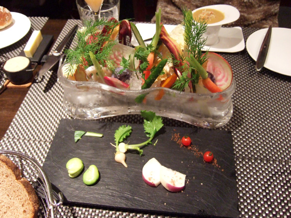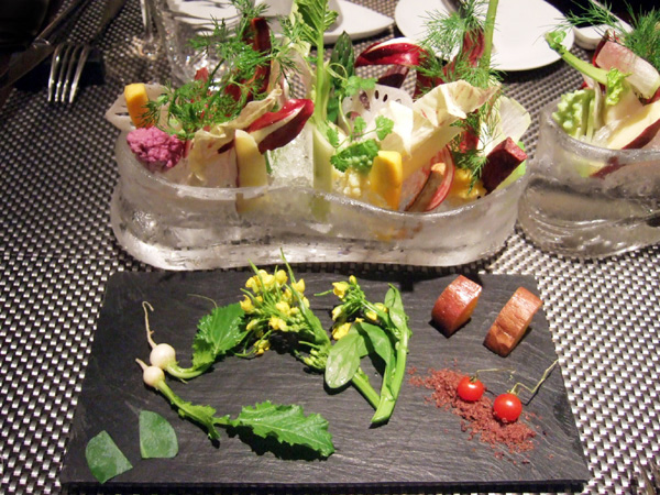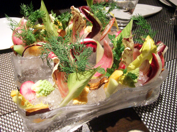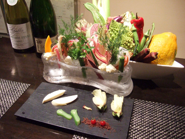 日本各地から取り寄せた有機野菜と能登産ズワイ蟹とカニミソのバーニャカウダ