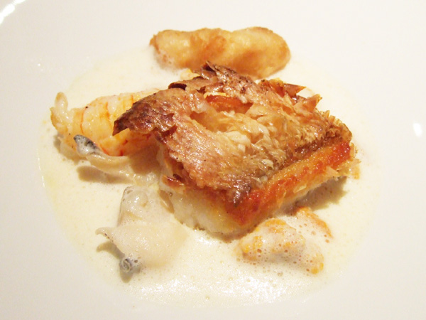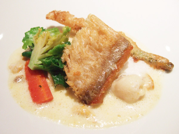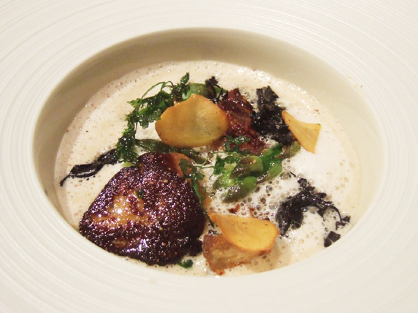 前回もいただいてすごく美味しかったアマダイの松笠焼き、そして冬と春の境目を表したような白子のムニエルとホワイトアスパラガスのお料理!しみじみと美味しいです。