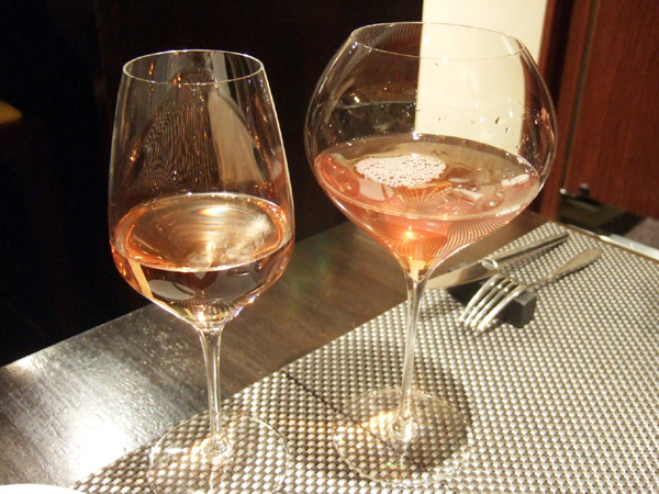 ピノ・ノワール ロゼのジュース(950円)とロゼワインをならべてみる