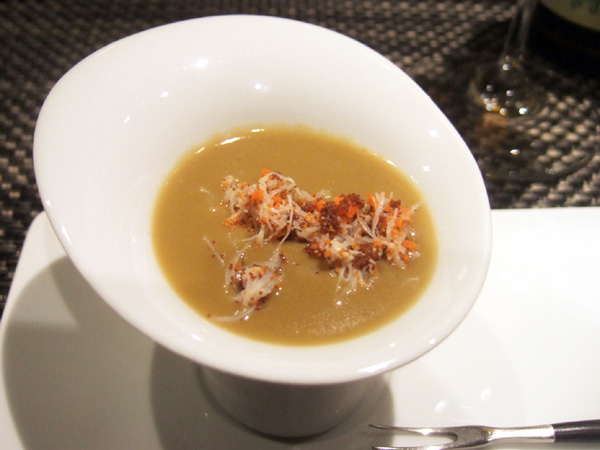 『シャンピニオン・ド・パリ』のポタージュ 黒アワビのソテーと