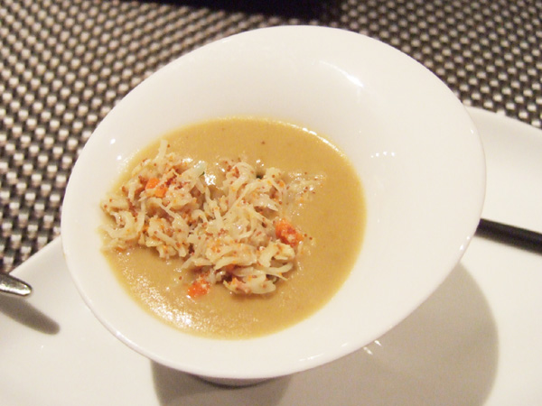 ・『シャンピニオン・ド・パリ』のポタージュ 黒アワビのソテーと