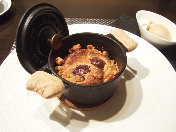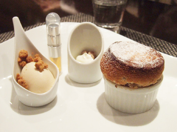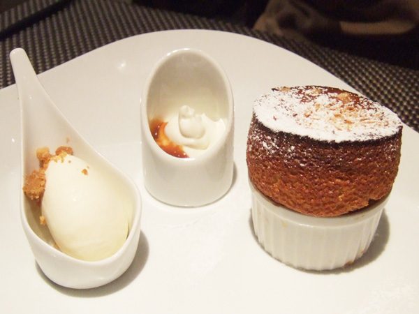 ・本日の温かいスフレ ベストマッチのアイスクリームを添えて(今日はキャラメルのスフレと塩アイスクリーム)