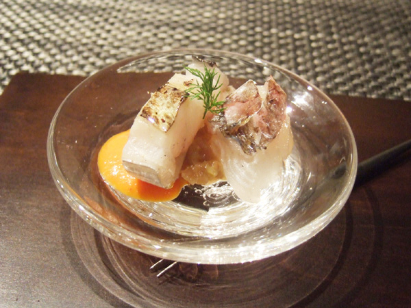 前回のトマトのアミューズもとっても美味しかったのですが、今回いただいた真鯛と太刀魚のアミューズも絶品。