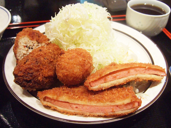 ミックス(950円)※コロッケ2個、メンチかつ1個、ハムかつ4分の3