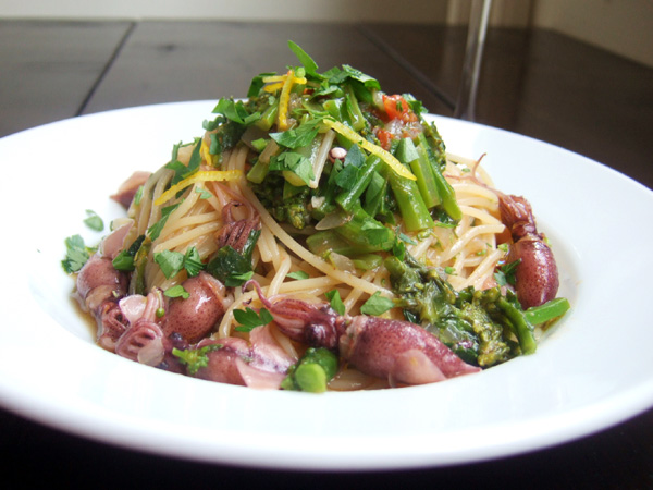 ほたるいかと菜花のスパゲティーニ(1200円)