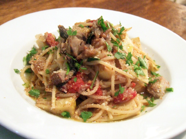 琉球島豚ばら肉と紅玉、菊芋のスパゲティ(1450円)