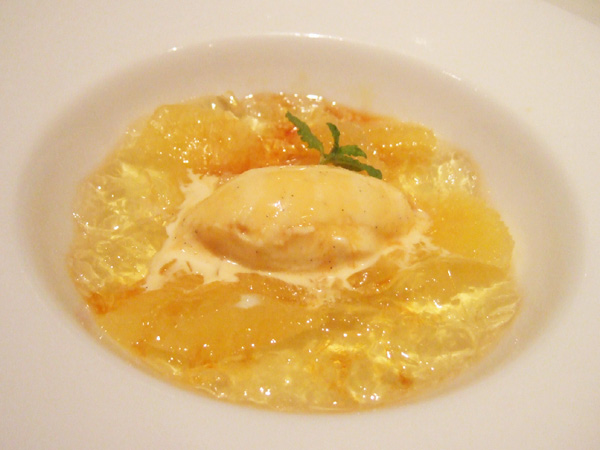 季節の果物のミントゼリー寄せとヴァニラアイスクリーム(840円)