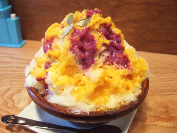 紫いもとカボチャが使われたパンジーのような色合い、その名も「毒キノコ氷」!乙女心をくすぐる一品ですネ。