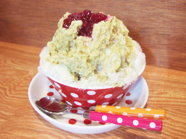 かき氷はベリーとピスタチオのとっても華やかな組み合わせでした。らーめんも美味しいし、大満足!