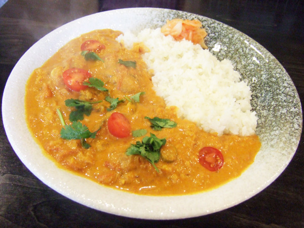 日々違う顔を見せるチキンカレー、今回はパクチー入りです。