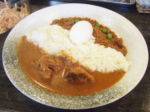 キーマカレーはかなり美味しく、半熟卵が丸1個乗ってるのもいい感じです。